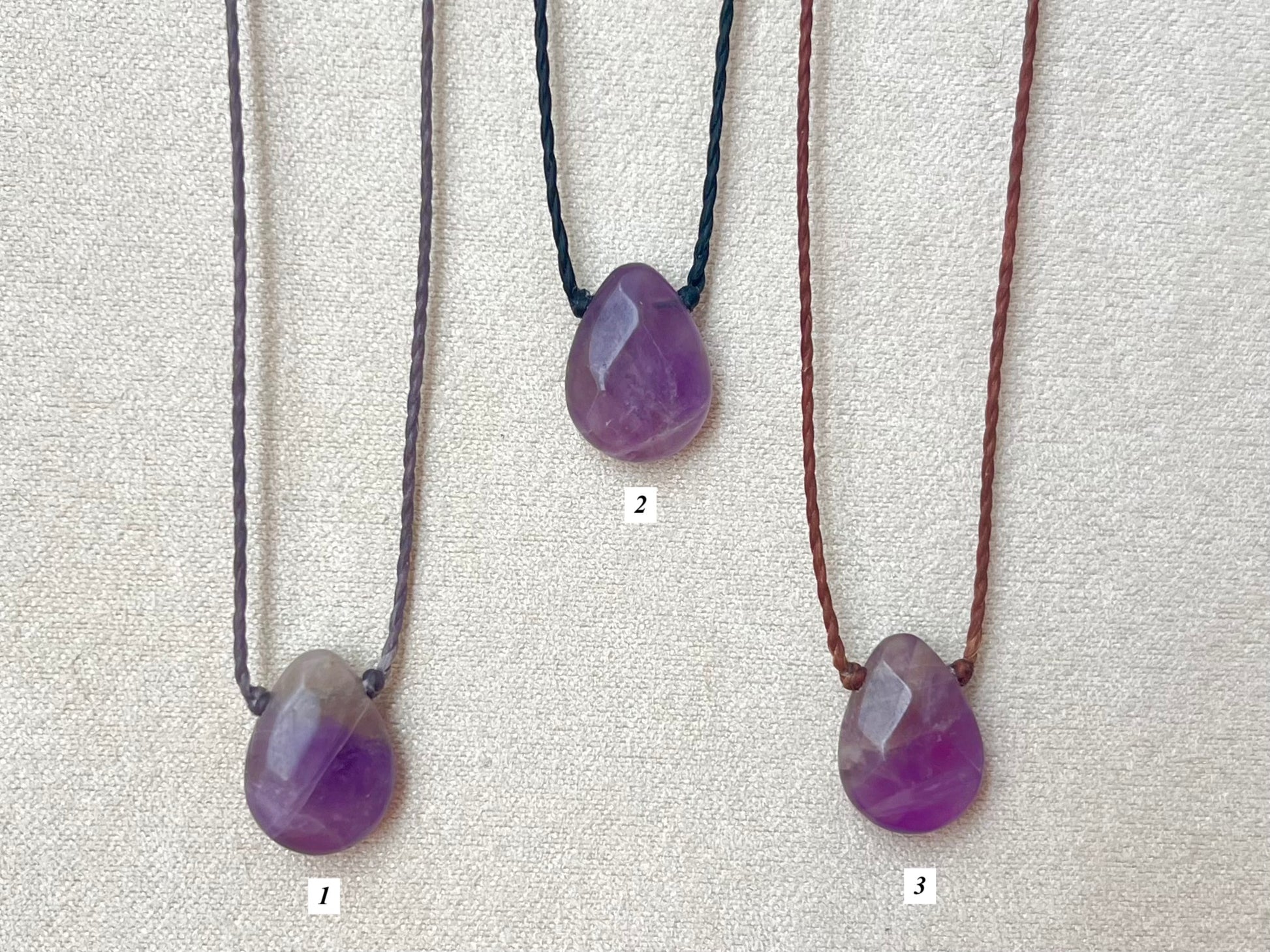 Teardrop beaded chokers, featuring genuine amethyst teardrop beads (faceted!) and waxed cotton cord!